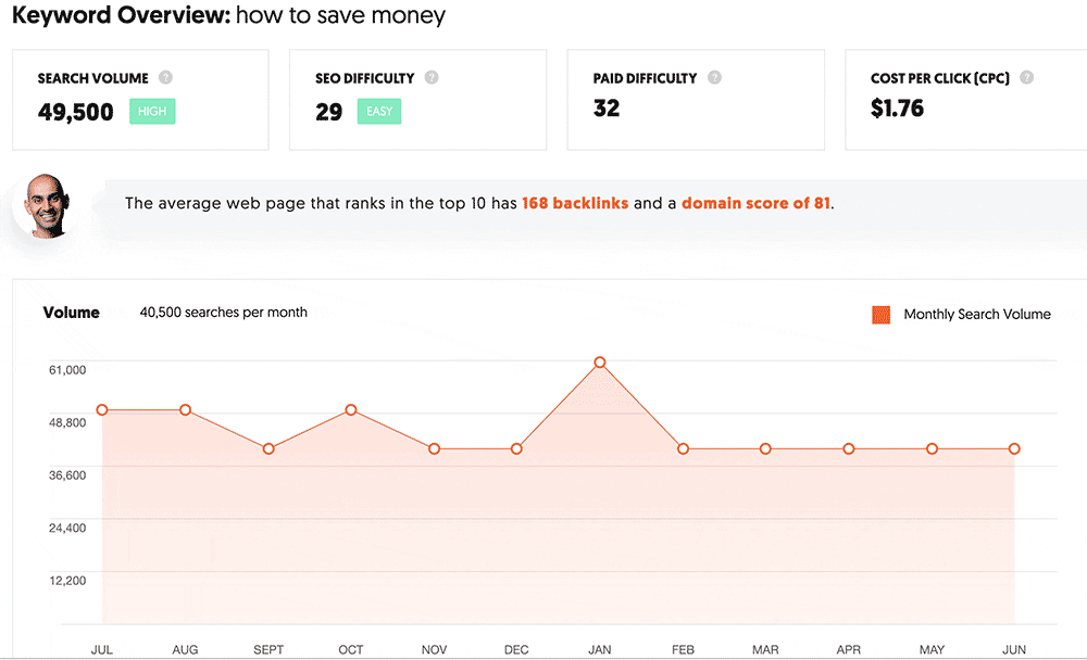 For instance, if you want to write a blog about personal finance, you could type in: ‘How to save money?’ As you can see this is a very popular topic and on average it sits around 49500 searches per month (in the United States).