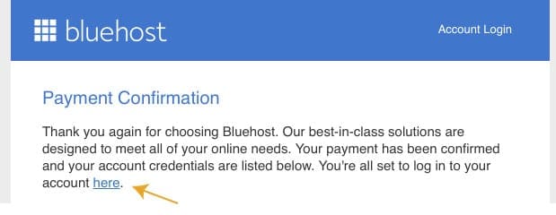 Bluehost will send you an email confirmation with a link to your website.